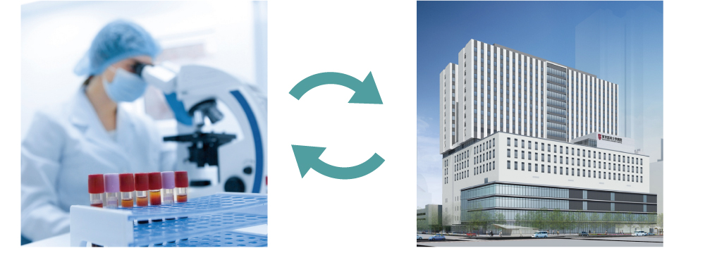 検査機関の研究員は、最⾼の技術と知識をもつスペシャリストです。⼤学病院内の研究センターから最新の研究成果を常に共有し解析・検査にアップデートできる体制を構築しています。